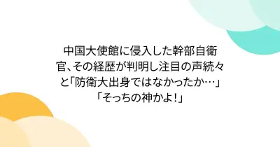 中国大使館に侵入した幹部自衛官、その経歴が判明し注目の声続々と「防衛大出身ではなかったか…」「そっちの神かよ!」