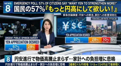 国民の57%「もっと円高にして欲しい!」