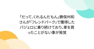 「だって、くれるんだもん」勝俣州和さんが『フレンドパーク』で獲得したパジェロに乗り続けており、車を買ったことがない事が発覚