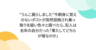 “うんこ漏らしました”今朝身に覚えのないポストが突然投稿され乗っ取りを疑い色々と調べたら、犯人は去年の自分だった「果たしてどちらが嘘なのか」