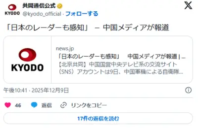 「中国側も日本機のレーダーを感知していた」 中国メディアが報道