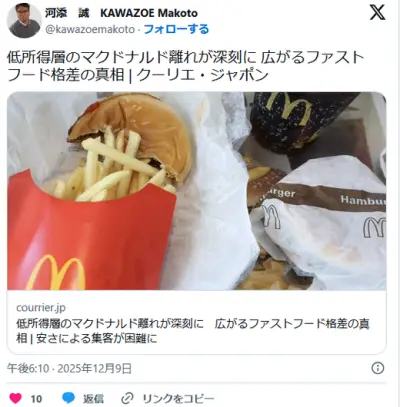 低所得層のマクドナルド離れが深刻に 広がる「ファストフード格差」の真相 米国