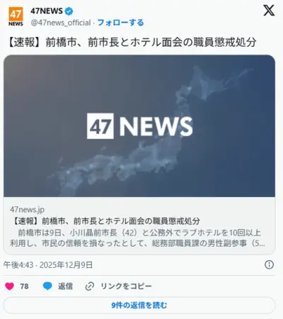 【悲報】ラブホ市長と10回以上交尾施設に行った元秘所課長、降格だけでなく6か月の停職で依願退職へ