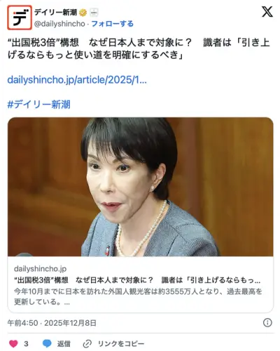 出国税一律3000円、日本人からも徴収