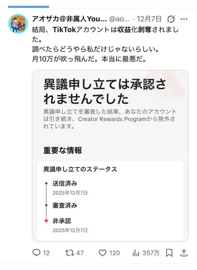 中国、日本人tiktoker収益化剥奪の報復開始www