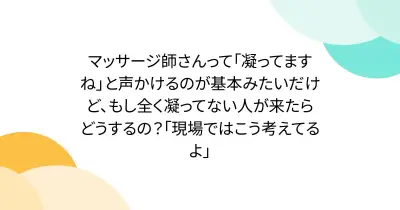 マッサージ師さんって「凝ってますね」と声かけるのが基本みたいだけど、もし全く凝ってない人が来たらどうするの?「現場ではこう考えてるよ」