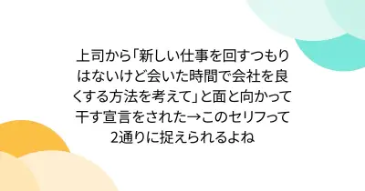 上司から「新しい仕事を回すつもりはないけど会いた時間で会社を良くする方法を考えて」と面と向かって干す宣言をされた→このセリフって2通りに捉えられるよね
