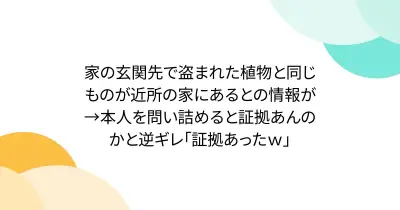 家の玄関先で盗まれた植物と同じものが近所の家にあるとの情報が→本人を問い詰めると証拠あんのかと逆ギレ「証拠あったw」