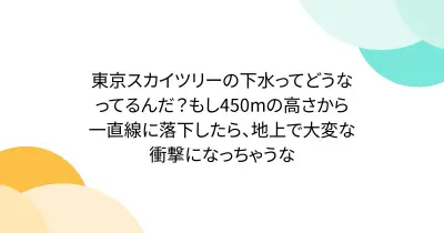 東京スカイツリーの下水ってどうなってるんだ?もし450mの高さから一直線に落下したら、地上で大変な衝撃になっちゃうな