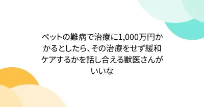 ペットの難病で治療に1,000万円かかるとしたら、その治療をせず緩和ケアするかを話し合える獣医さんがいいな