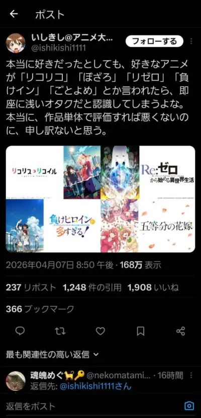 【画像】深いアニメオタク、浅いアニオタを冷笑して炎上wwww