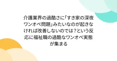 介護業界の過酷さに「すき家の深夜ワンオペ問題」みたいなのが起きなければ改善しないのでは?という反応に福祉職の過酷なワンオペ実態が集まる