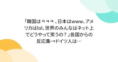 「韓国はㅋㅋㅋ 、日本はwww、アメリカはlol、世界のみんなはネット上でどうやって笑うの? 」各国からの反応集→ドイツ人は…