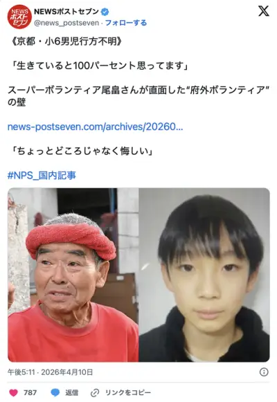 【悲報】京都男児行方不明に駆けつけたスーパーボランティアさん、“京都の人じゃないから”と断られる