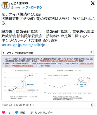 【速報】インターネット(光回線)来年度以降大幅に値上げへ