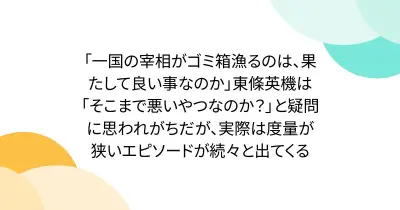 「一国の宰相がゴミ箱漁るのは、果たして良い事なのか」東條英機は「そこまで悪いやつなのか?」と疑問に思われがちだが、実際は度量が狭いエピソードが続々と出てくる