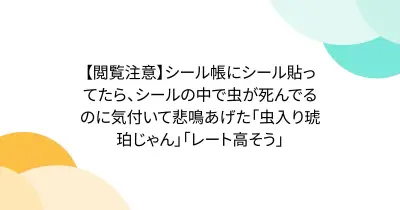 【閲覧注意】シール帳にシール貼ってたら、シールの中で虫が死んでるのに気付いて悲鳴あげた「虫入り琥珀じゃん」「レート高そう」