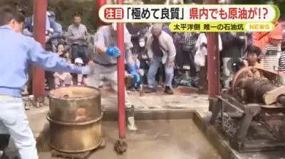 静岡県内でも原油産出、極めて良質な原油くみ上げ作業に人だかり
