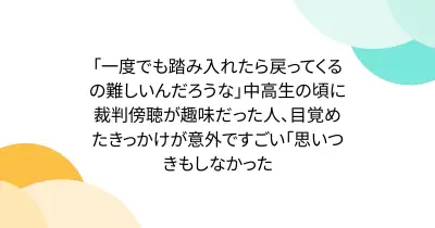 「一度でも踏み入れたら戻ってくるの難しいんだろうな」中高生の頃に裁判傍聴が趣味だった人、目覚めたきっかけが意外ですごい「思いつきもしなかった