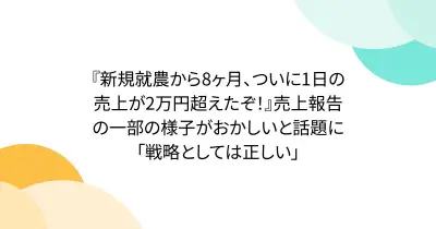 『新規就農から8ヶ月、ついに1日の売上が2万円超えたぞ!』売上報告の一部の様子がおかしいと話題に「戦略としては正しい」
