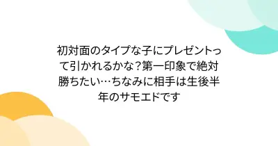 初対面のタイプな子にプレゼントって引かれるかな?第一印象で絶対勝ちたい…ちなみに相手は生後半年のサモエドです