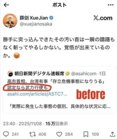 【台湾有事】薛剣がブチギレたのは朝日新聞の誤報が原因と判明…大ごとになった後にしれっと修正