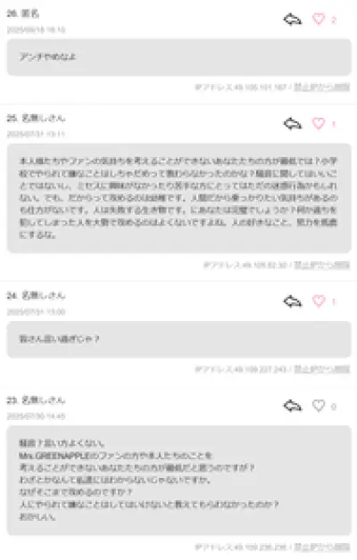 【ネット】札幌在住ミセスファン、騒音記事に発狂して粘着荒らし…「小学校でやられて嫌なことはしちゃだめって教わらなかったのかな?」「人の好きなこと、努力を馬鹿にするな」