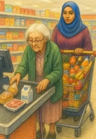 【移民】今のヨーロッパの風刺画としてバズっている画像がこちら…勝手に移民してきたムスリムが生活保護で裕福な生活をする一方、年金暮らしの老人はギリギリの生活