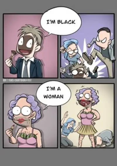 【風刺画】皮肉なことに、ブラックフェイスを嫌悪するグループが、男が女のふりをすることを称賛するのと同じグループだ