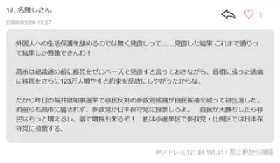 【衆院選】「高市さんの『今の議席数だと政策が進められない』発言。国にとって良い政策なら野党を説得すれば良いと思うんですが」…ネット「説得に応じる野党ではない」