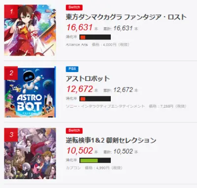 【初週売上】アストロボット 12672本