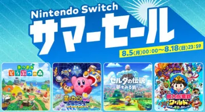 【チャンス】8月5日から、「Nintendo Switch サマーセール」開催!ソフト最大75%オフで何でも安い!!