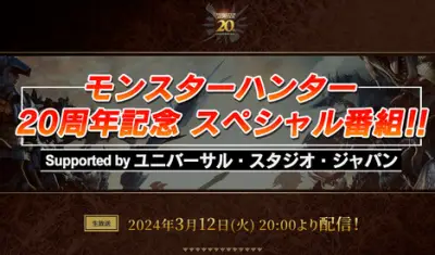 『モンハン』20周年記念番組が放送決定!約2時間の特大ボリューム、なお『ワイルズ』の情報はなし