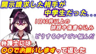 【悲報】Vtuberさん、誹謗中傷を開示したら中学生だったので特別な対応を弁護士にお願いしてしまう