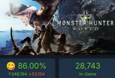 【祝】モンハンワールドのsteam同接が3年ぶりに6万人を超えてしまう しかもライズの3倍