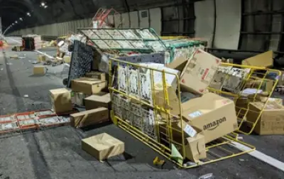 【画像】トラック事故、Amazonブラックフライデーのセール品と思われる荷物が散乱しめちゃくちゃになってしまう