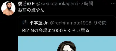 平本蓮「RIZINにこんな女1000人は居る」X民「お前の嫁やん」蓮「😡😡😡」