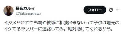 呂布カルマ「イジメられてる子は地元のイケてるラッパーに連絡してみ。絶対助けてくれるから。」