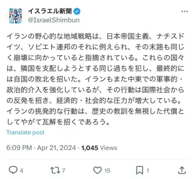 イスラエル「イランは大日本帝国のような国」 イラン「イスラエルこそ大日本帝国だ」 日本「・・・」