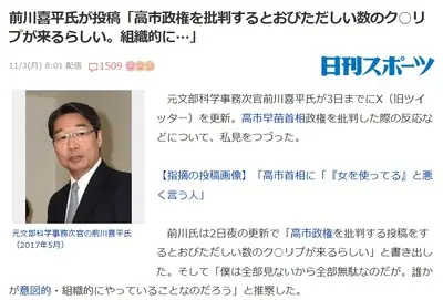前川喜平氏「高市政権を批判するとおびただしい数のク○リプが来るらしい。組織的に…」