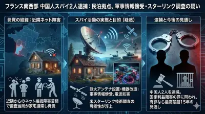 【速報】仏当局が中国人2人をスパイ容疑で逮捕 民泊にパラボラ設置、軍事情報を本国に送信か