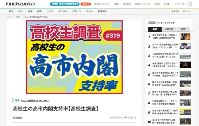 【調査】現役高校生の6割超が高市内閣を「支持」
