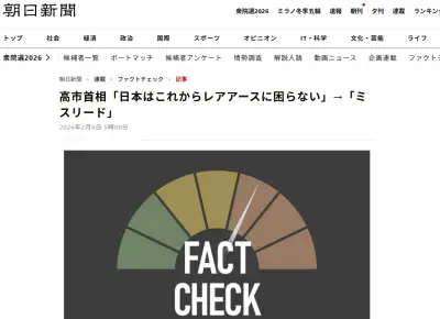 【速報】高市早苗「もうレアアースに困らない」を朝日新聞がファクトチェック こんなことばっかり必死だなw