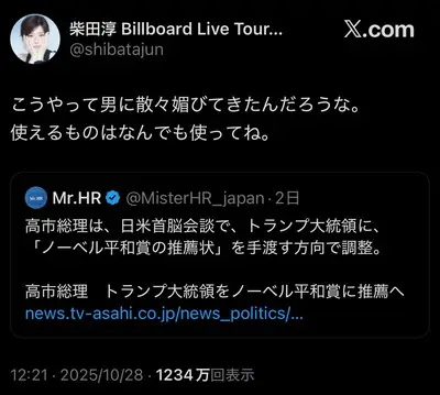 歌手・柴田淳、高市首相を男に媚び売りだと批判→SNS「お前こそ」殺到→柴田「◯ねばいいんですかね」被害者に変身
