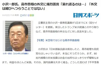 【速報】小沢一郎「呆れかえる。外交とは媚びへつらうものではない。80兆円など貴様何しているんだ!!」お前はなんの仕事しているんだよwww