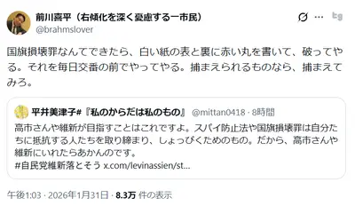 【速報】前川喜平氏「国旗損壊罪なんてできたら白い紙の表と裏に赤い丸を書いて破ってやる。捕まえてみろ」