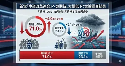 【速報】新党「中道改革連合」 期待しない71%(4%増) 期待するは23.1%(5.1%減)