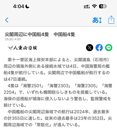 【速報】尖閣周辺に機関砲搭載の中国船4隻。もう一度言う、中国船4隻