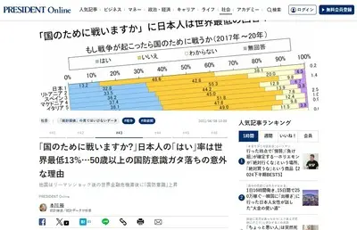 【悲報】日本のZ世代「戦争が起きても国の為に戦いません。すぐ降伏して寝返ります」驚異の9割ww