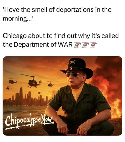 【速報】トランプ大統領、シカゴ派兵示唆 地獄の黙示録もじった画像投稿「なぜ戦争省と呼ばれるのか、シカゴは知ることになるだろう」